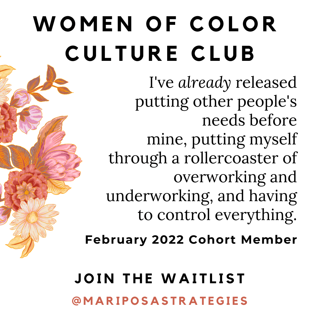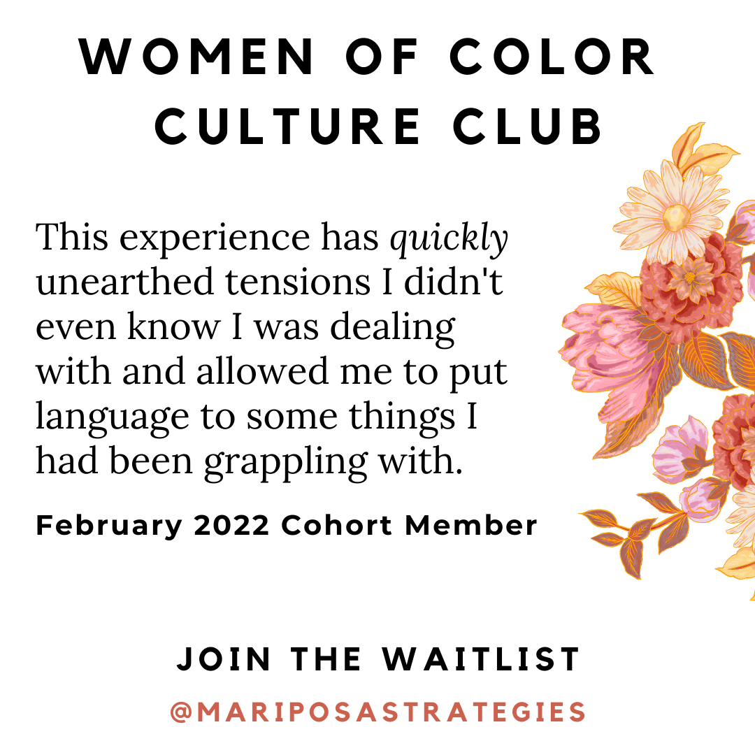 I'm the person behind the WOC Culture Club. I'm also CEO of Mariposa Strategies, heart healer & visionary guide to leaders & magic makers moving through big change.